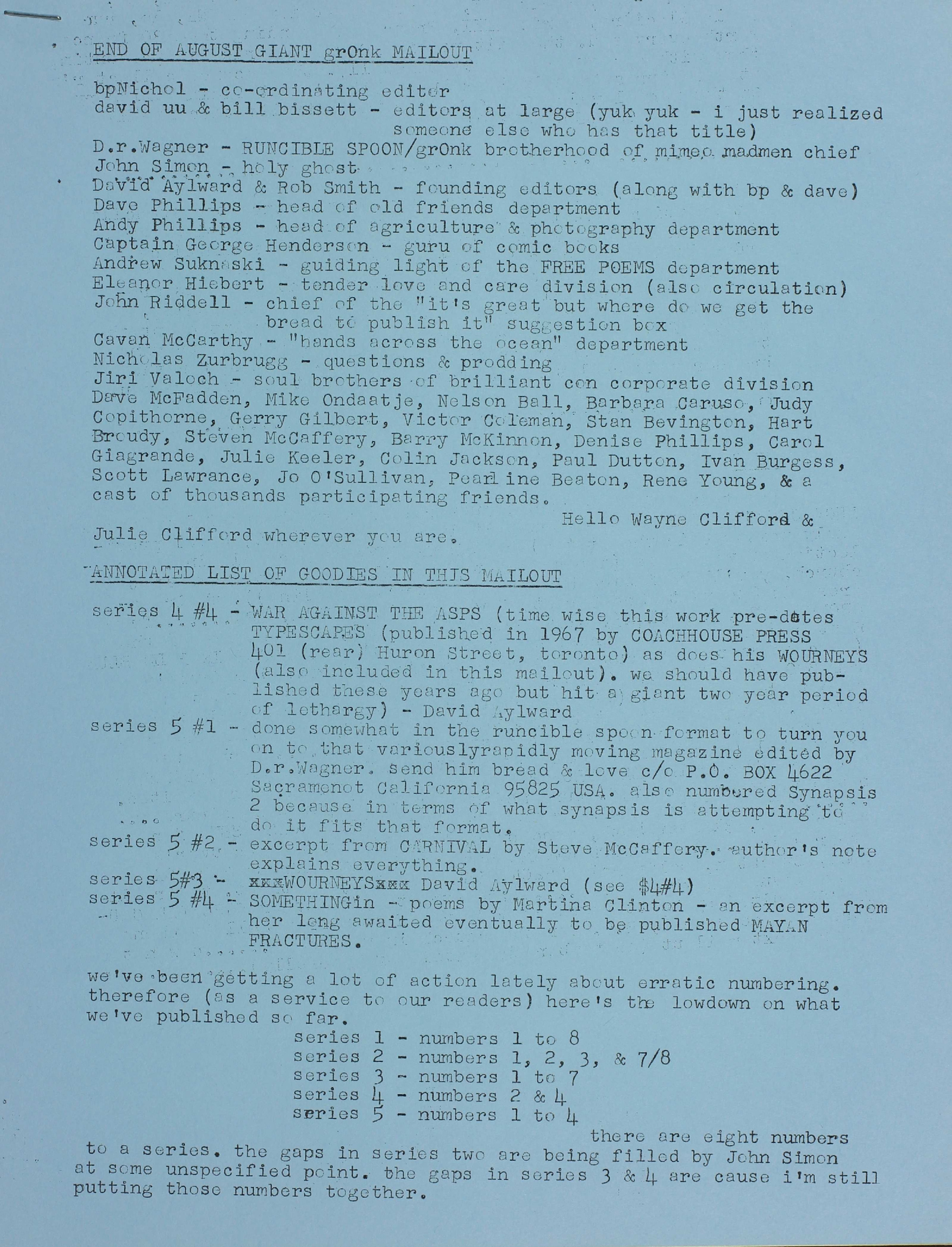i) END OF AUGUST GIANT grOnk MAILOUT (p.1, cast of characters)