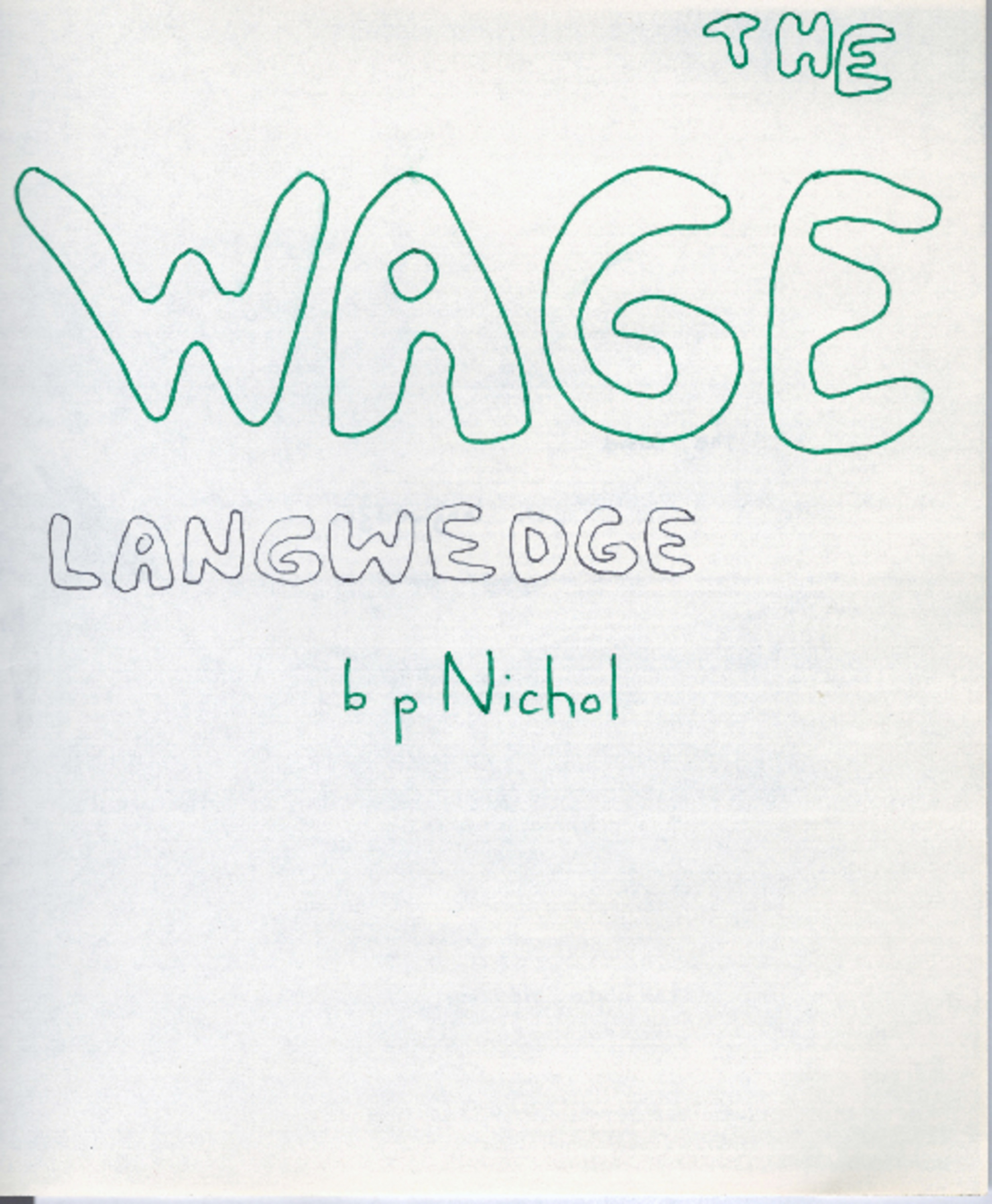 Reprint of 1966 Ganglia Press publication, from the Tonto Or series #5. It was originally produced in an edition of 20 library-xerox copies with handlettered covers by bp.