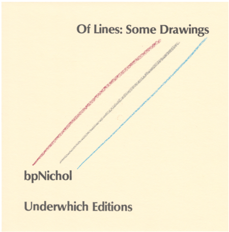 bpNichol, Of Lines: Some Drawings. Toronto: Underwhich Editions, 1981. Full Colophon: Of Lines: Some Drawings was printed and drawn in an edition of 150 copies in Toronto in March 1981. This is copy #146.  Published by: Underwhich Editions