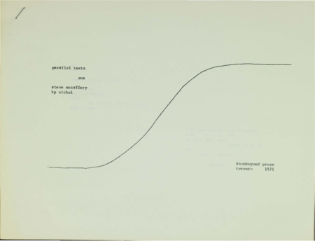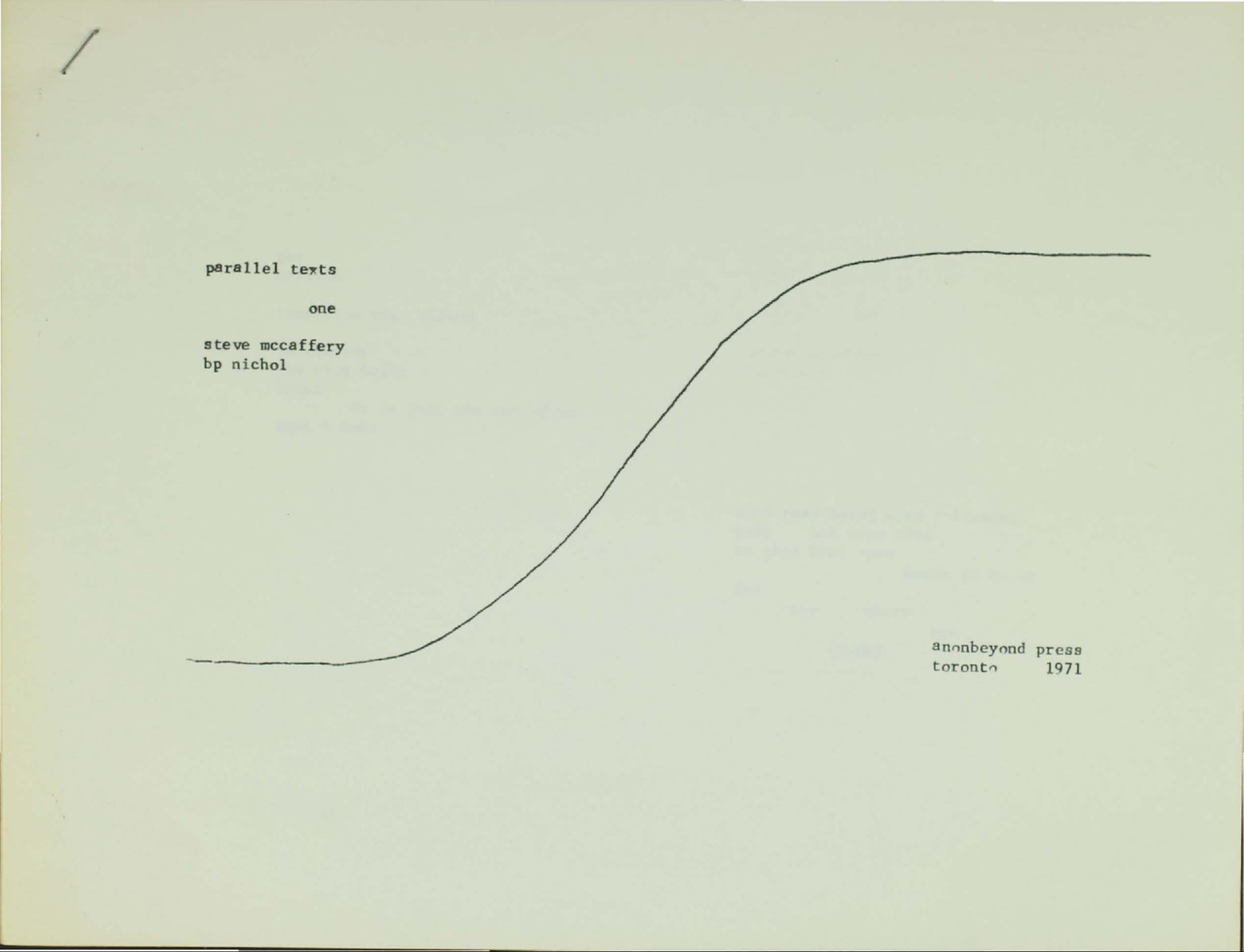 Genre Poetry Tags poetry; collaboration Collection bpNichol Digital Collection Contributors Author: Steve McCaffery Author: bpNichol Date Issued 1971 Local Identifier bp0100 Work Type Literary Work Title without prefix Parallel Texts Publisher Anonbeyond Press License Estate of bpNichol License Legacy ID 185 Artmob Citation ID 207