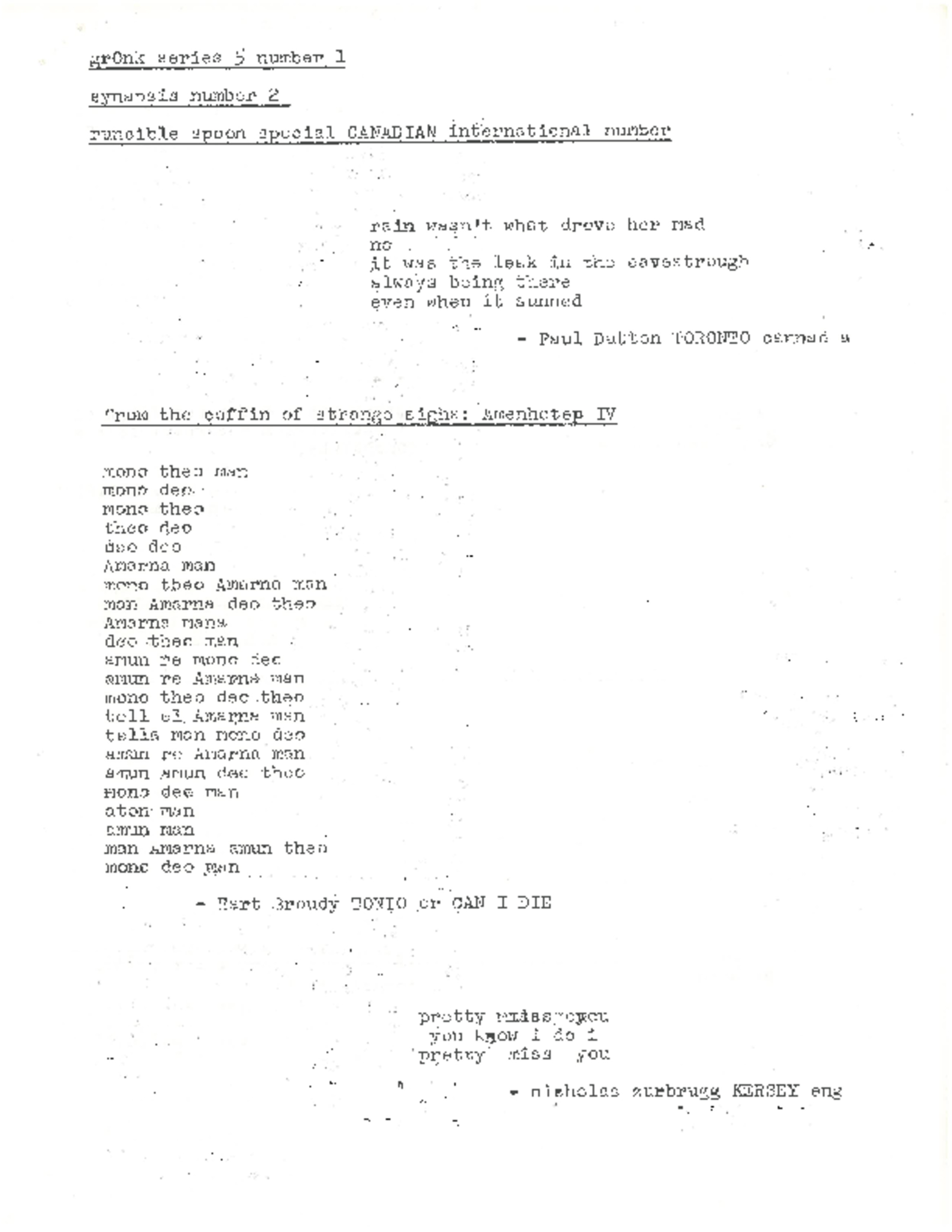 Synapsis Number 2/Runcible Spoon Special Canadian Issue. Toronto: Ganglia Press, [C1970?]. Edited by bpNichol.