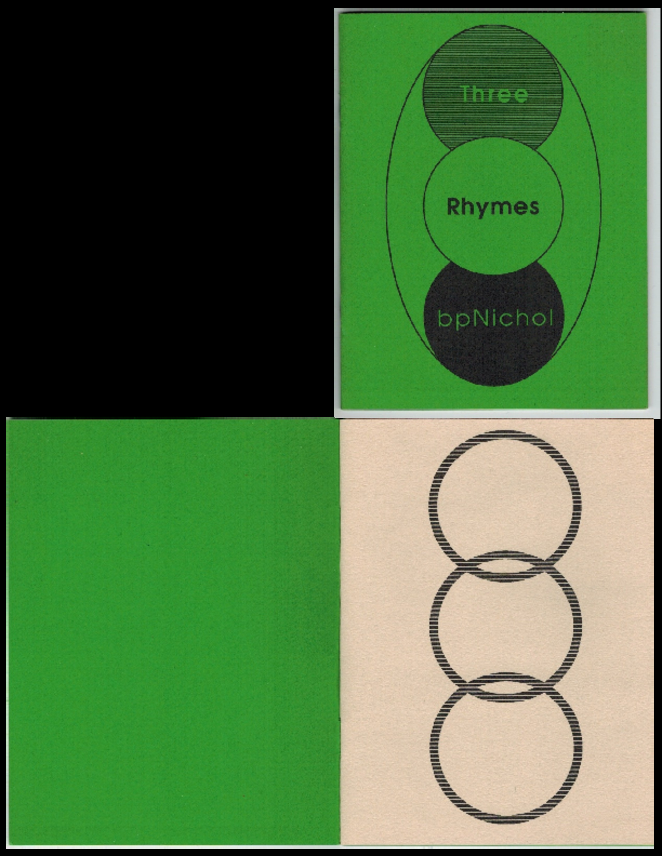 Genre Chapbooks Collection bpNichol Digital Collection Contributors Author: bpNichol Date Issued 1988 Local Identifier bp0146 Work Type Literary Work Title without prefix Three Rhymes Publisher Silver Birch Press License Estate of bpNichol License Legacy ID 236 Artmob Citation ID 300