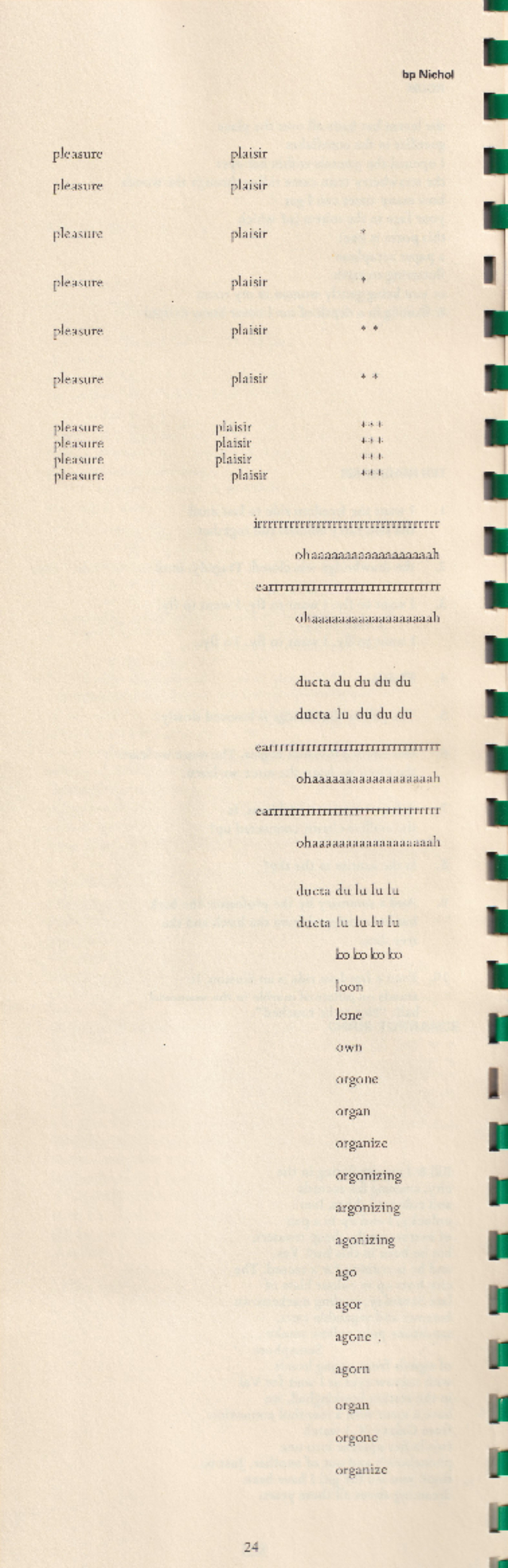 Genre Poetry Tags visual poetry Collection bpNichol Digital Collection Contributors Author: bpNichol Date Issued 1968 Local Identifier bp0152 Work Type Literary Work Title without prefix pleasure plaisir Publisher The Ants Forefoot License Estate of bpNichol License Legacy ID 243 Artmob Citation ID 312